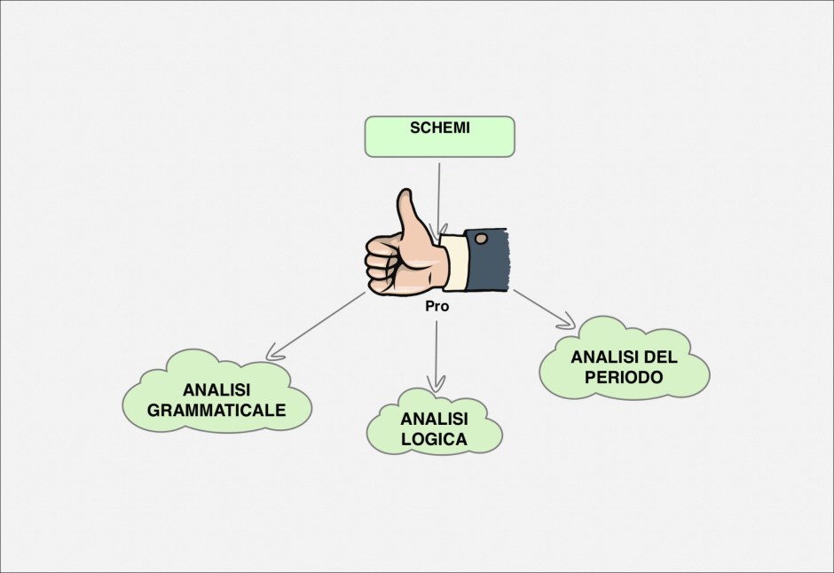 Schemi di sintesi dei concetti grammaticali di morfologia e sintassi.L’applicazione utilizzata è Inspiration Maps, disponibile su AppStore