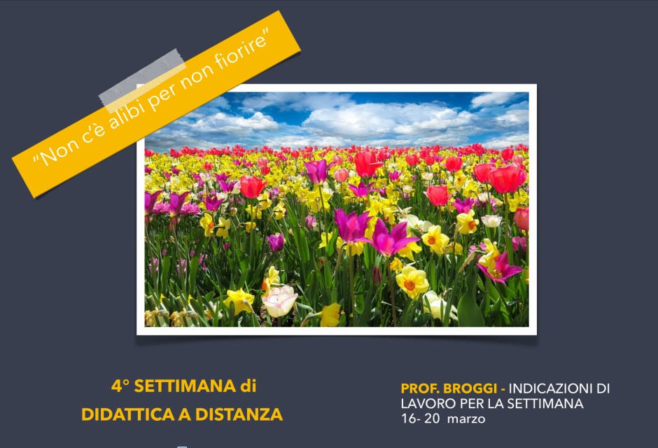 Indicazioni di lavoro per la settimana n. 4. …e ricordate … “non c’è alibi per non fiorire” ( A.D’Avenia)